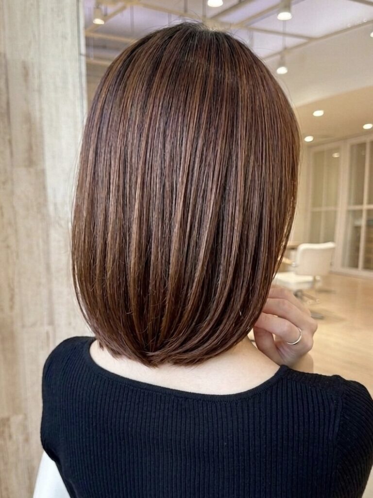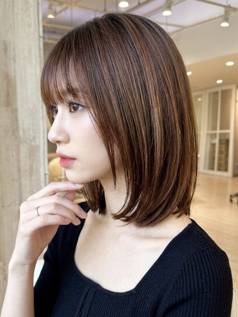 今回は、忙しい朝もワンカールで決まる、上品なミディアムボブ(ロブ)をご紹介します。重たく見えがちな長さを、顔まわりのデザインと透明感カラーで、軽やかに仕上げてあげると可愛いですよ。